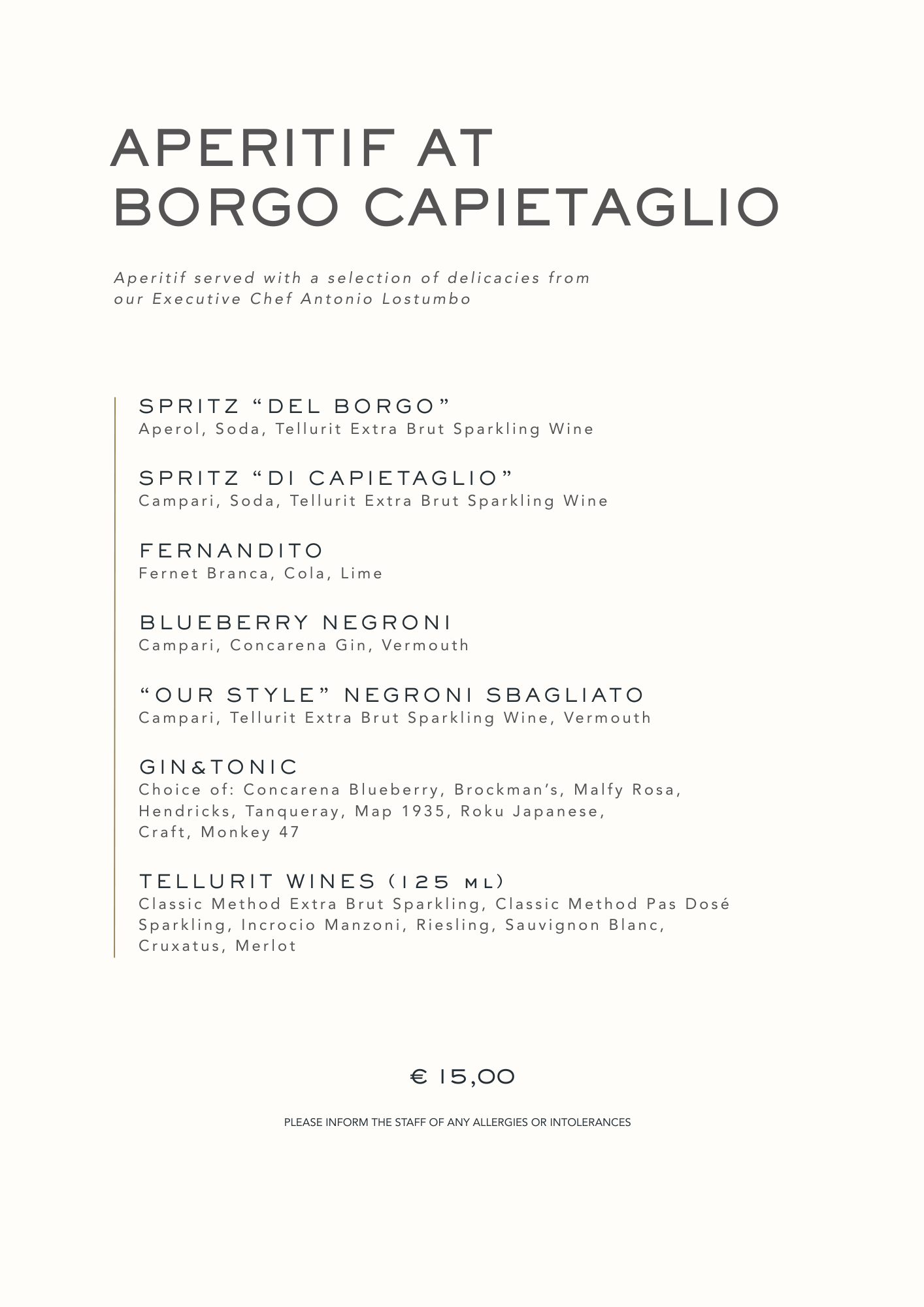 In the heart of the vineyards of Borgo Capietaglio Wine Resort, an aperitif designed to welcome and silence the noises of the city. A glass, some bites from the kitchen, the scent of the vineyards and the delicate sound of peace: an informal but careful moment, where authenticity is revealed in every detail.