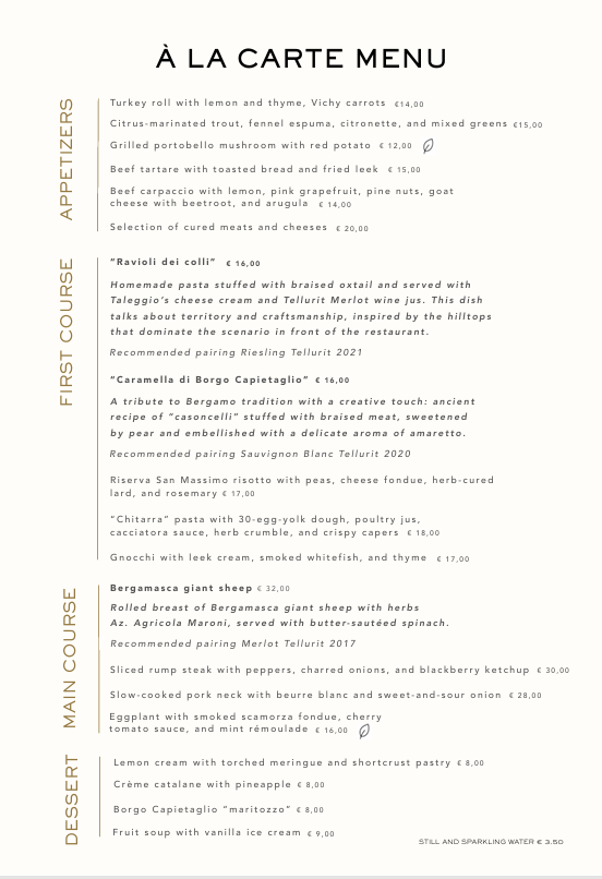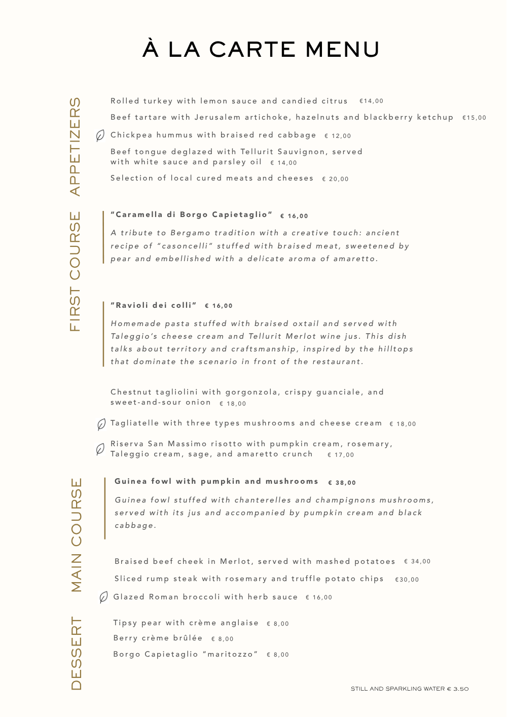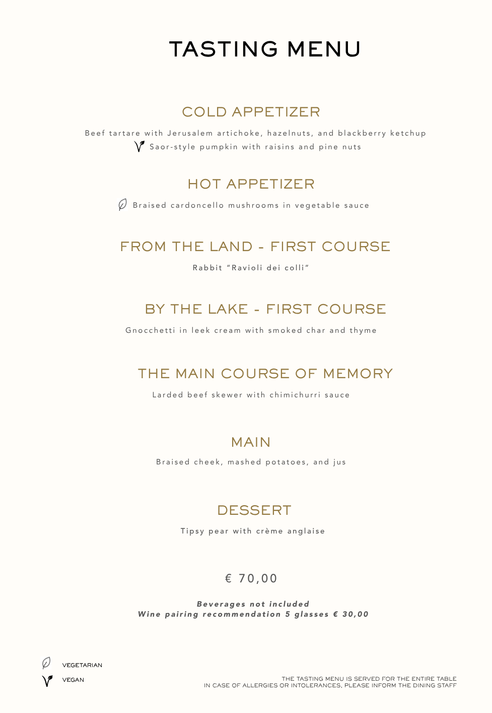 Our à la carte menu is born from authenticity: genuine flavours, sincere recipes, and combinations designed to move, surprise, and bring back distant memories.