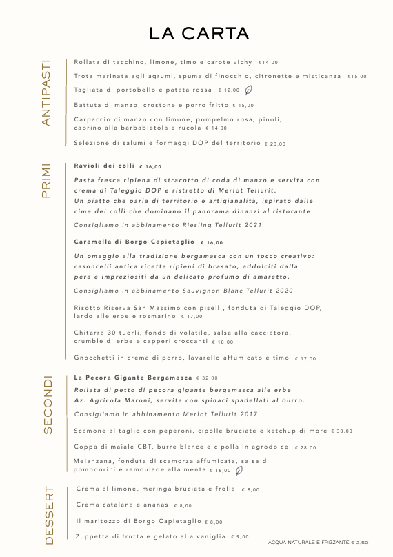 Il nostro menù alla carta nasce dall’autenticità: sapori veri, ricette sincere e combinazioni pensate per emozionare, sorprendere e far riaffiorare ricordi lontani.